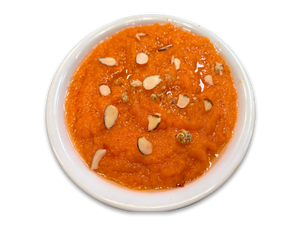 A sweet dessert made by placing grated carrots in a pot containing a specific amount of water, milk, sugar, and cardamom and then cooking with ghee while stirring regularly...