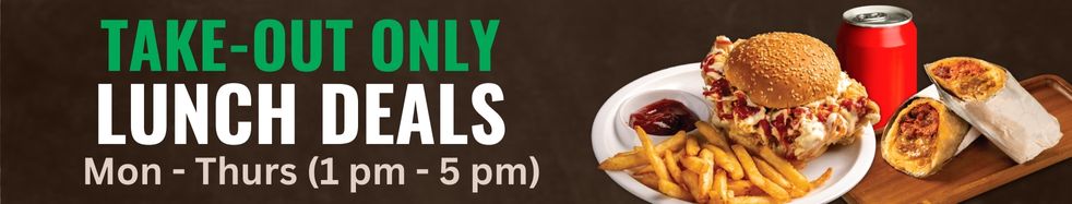 (Monday to Thursday | 1:00pm to 5:00pm) - Paratha Roll (any Chicken or Paneer), Crispy Chicken/Paneer Burger, French Fries, & Pop Can
